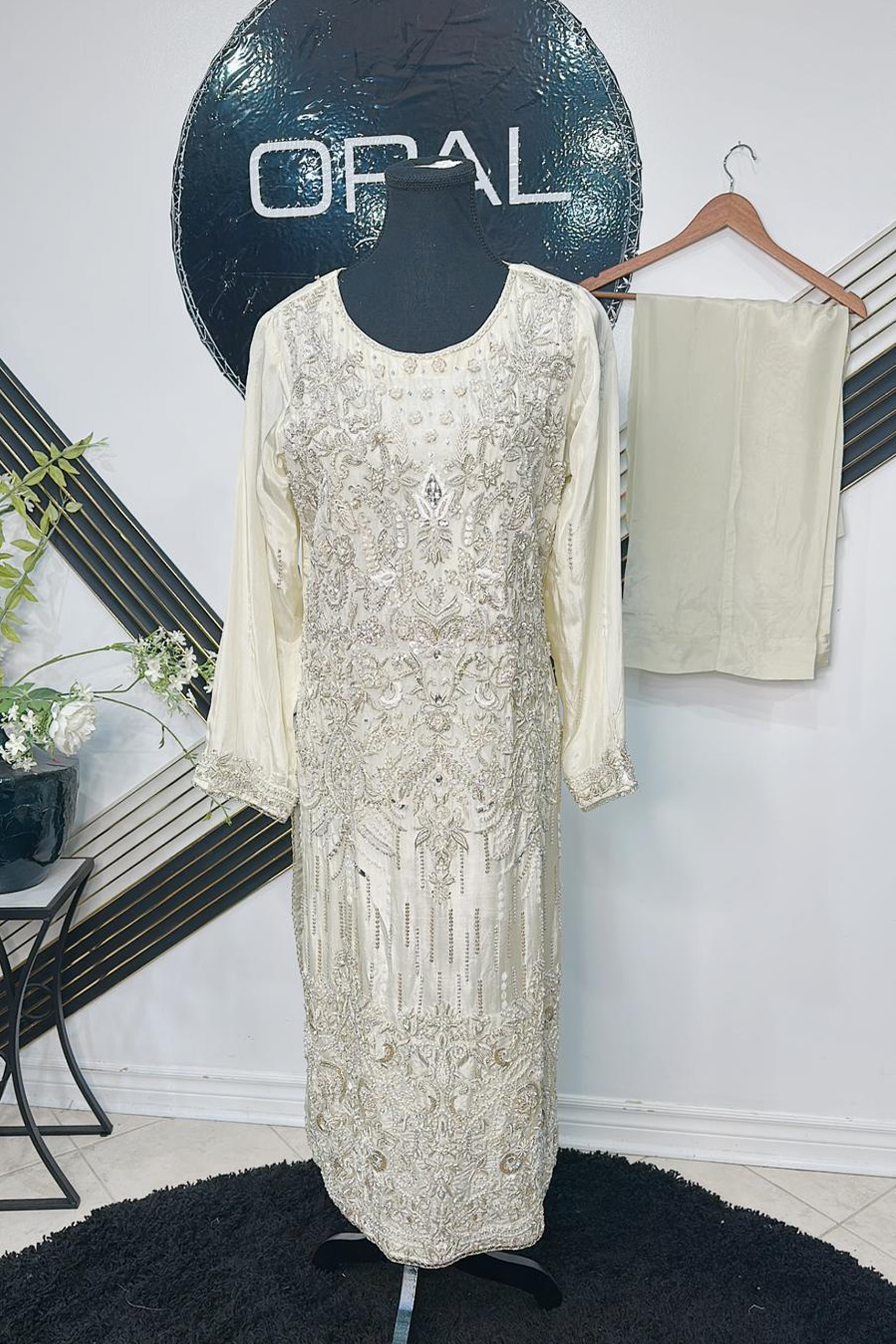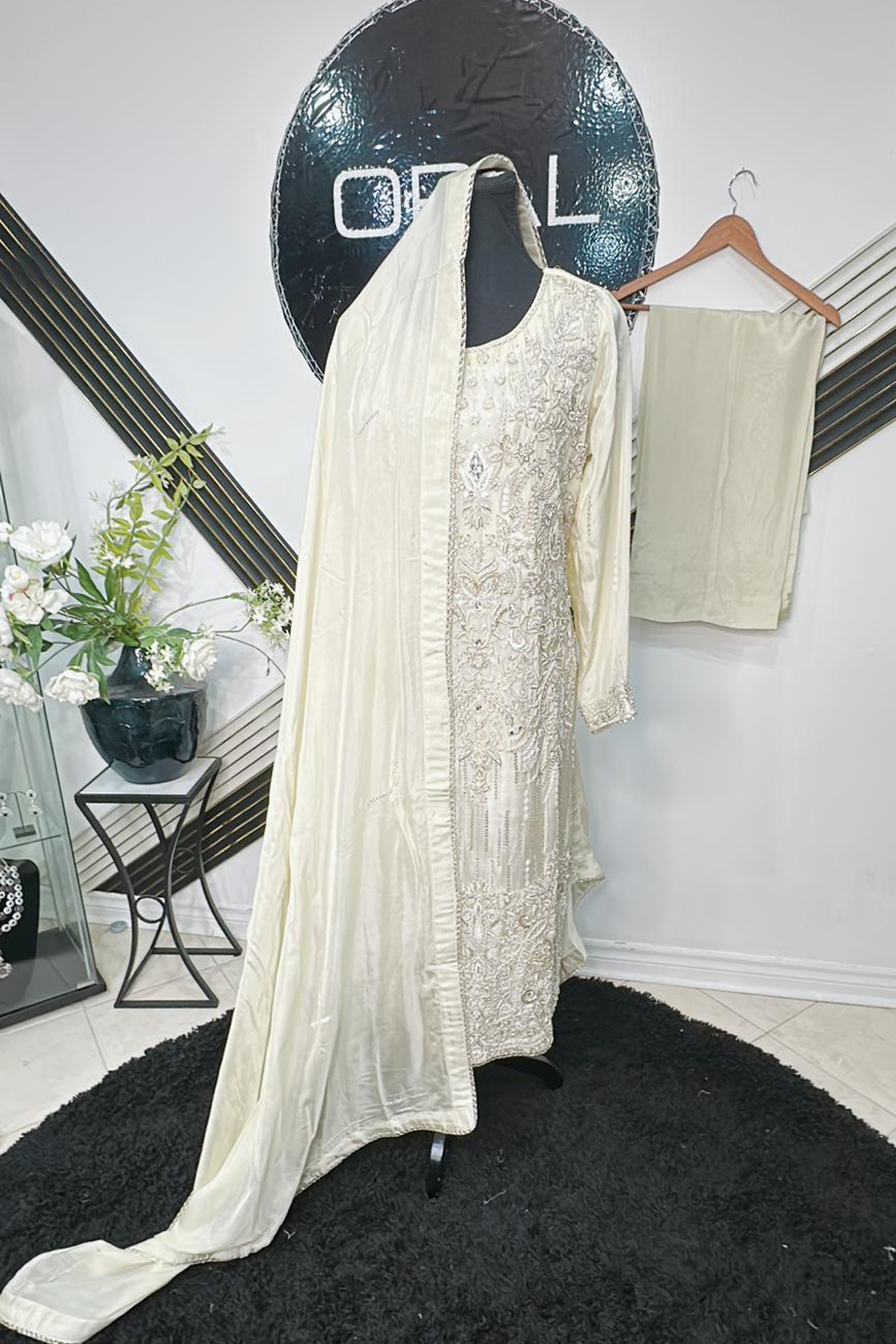 Embrace elegance on your big day with this hand-embellished luxury wedding outfit by Opal by Hafsa.