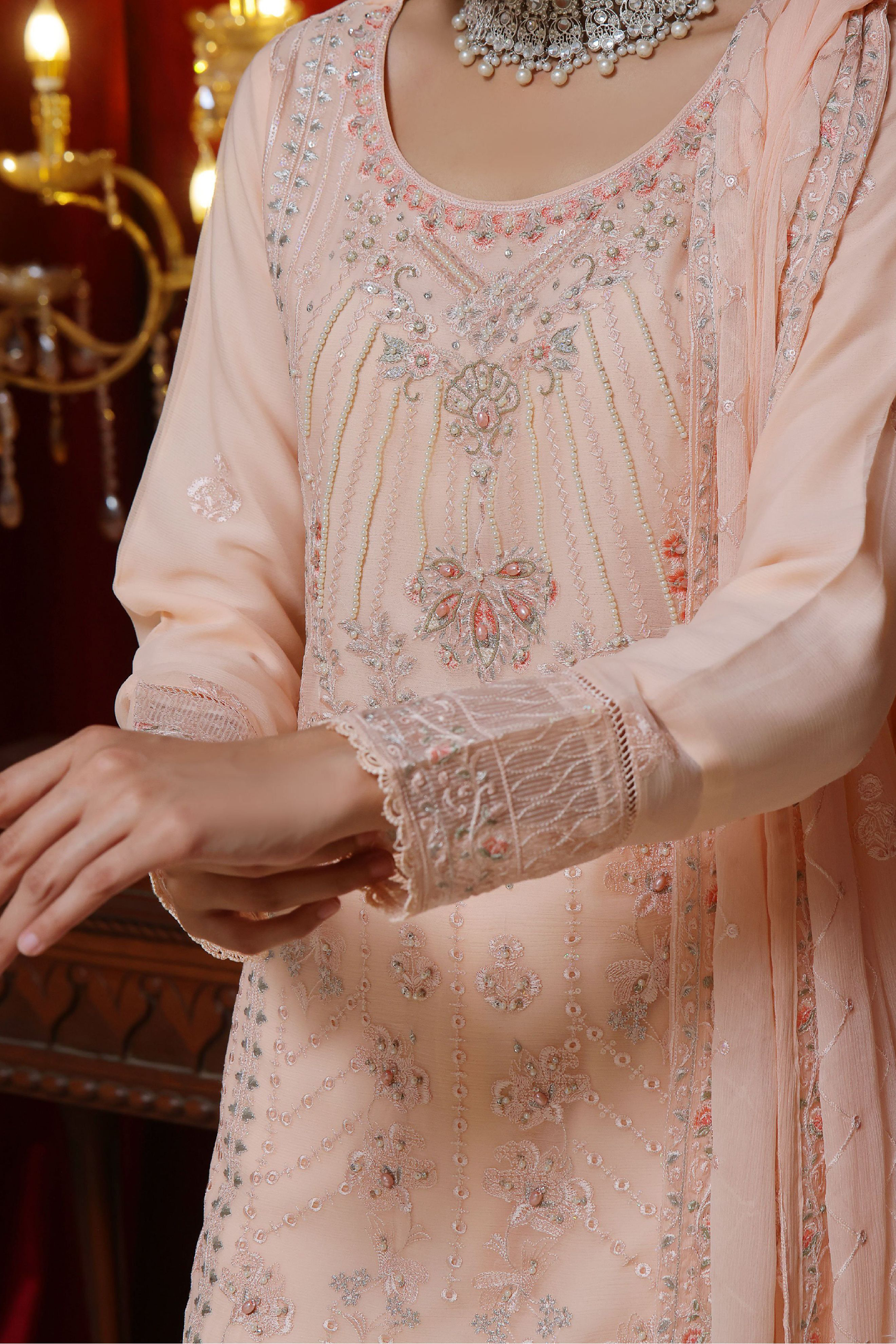 Our Luxury Embroidered Chiffon Collection features high-quality chiffon fabric adorned with detailed hand-embroidered designs. The perfect balance of sophistication and comfort, this collection is sure to add elegance to any wardrobe.